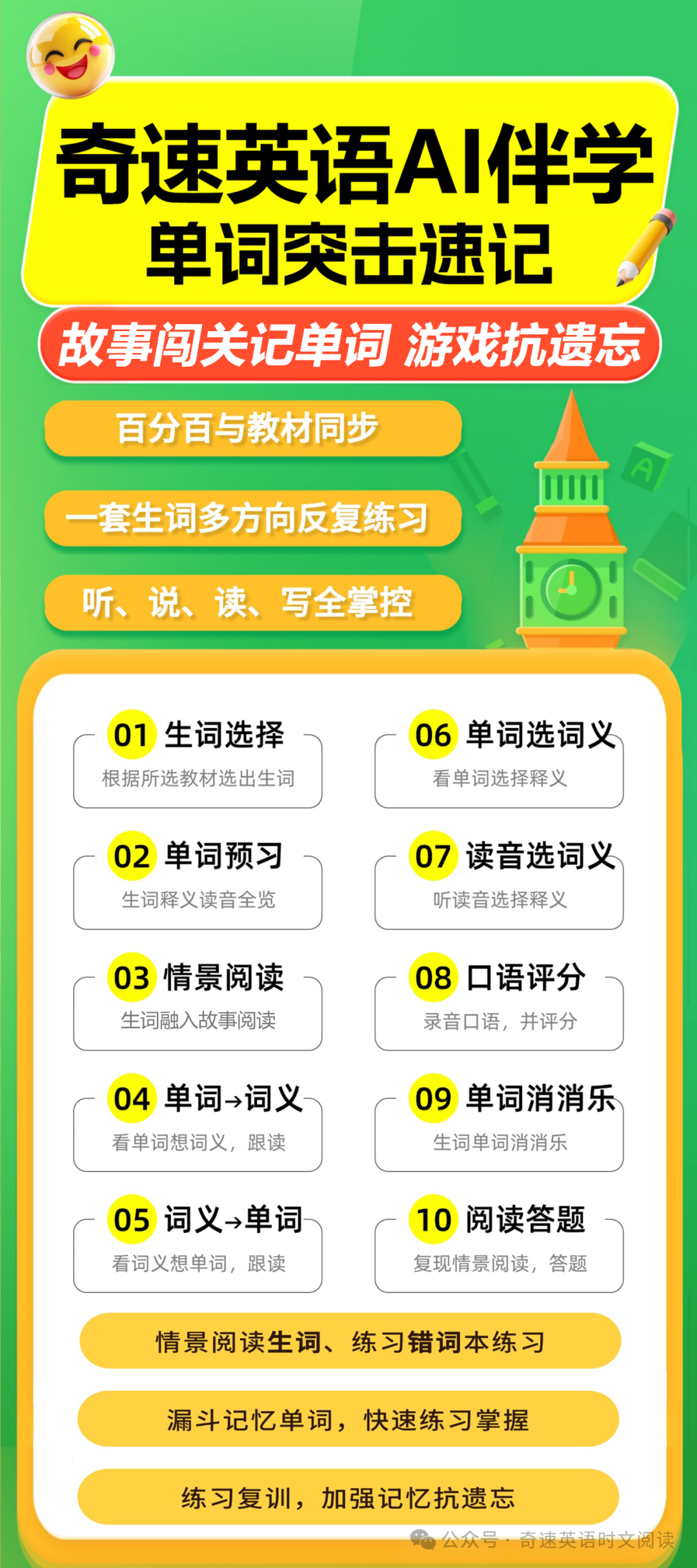 奇速英语AI自习室的内容绝非简单的单词列表或题库堆砌,其核心优势在于 “精准” 与 “有趣”