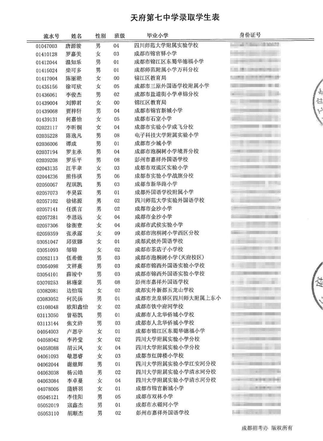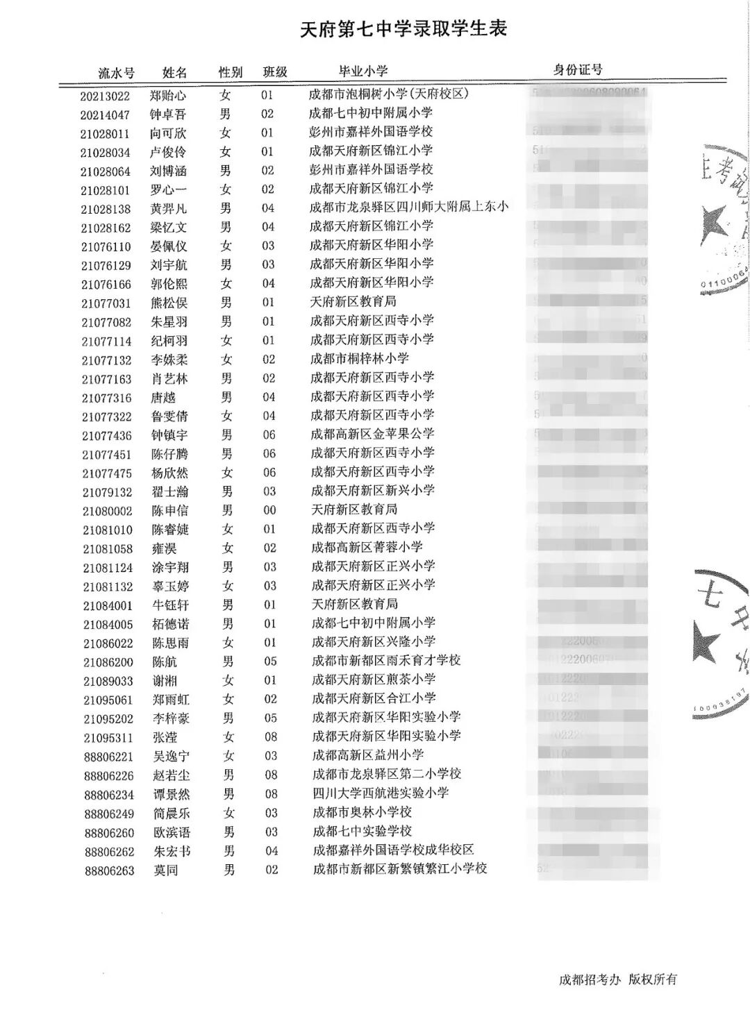 民办学校摇号录取名单