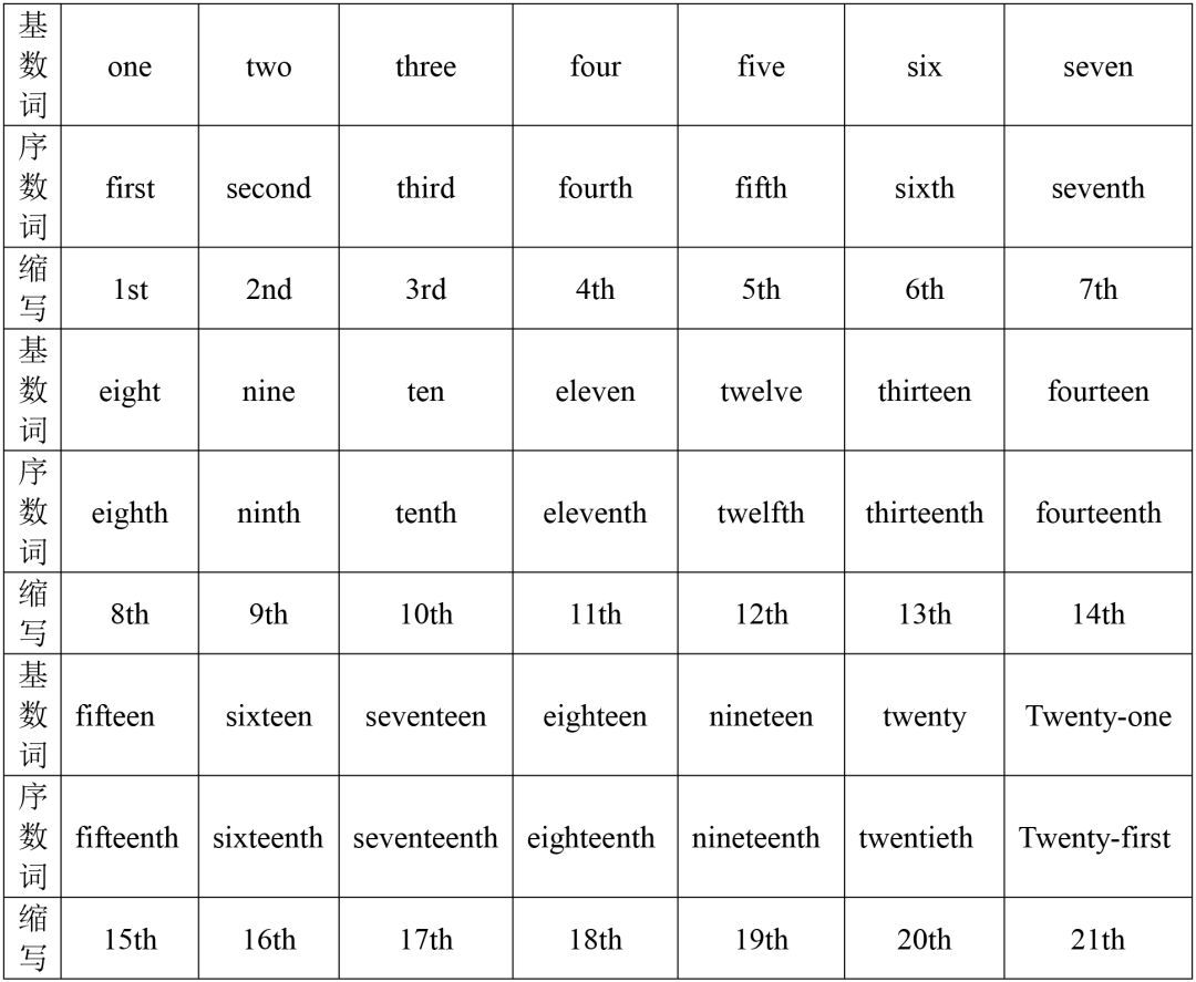 1.序数词的构成及其缩写