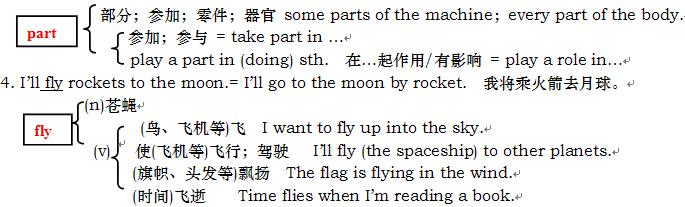3. Everyone should play a part in saving theearth. 每个人应该参与挽救地球。