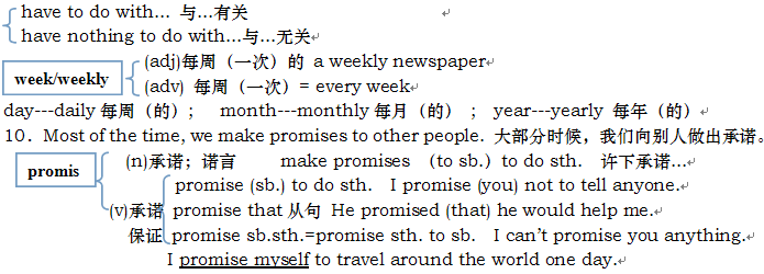 9. Some resolutions have to do with betterplanning, like making a weekly plan for schoolwork.有些决心是与更好地计划有关,比如为学习做周计划。