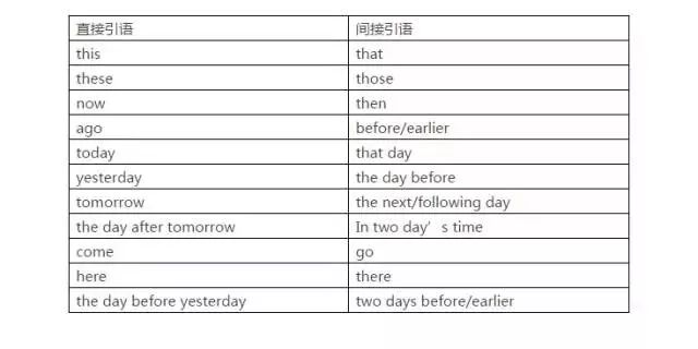(3)指示代词、时间状语、地点状语和动词的变化