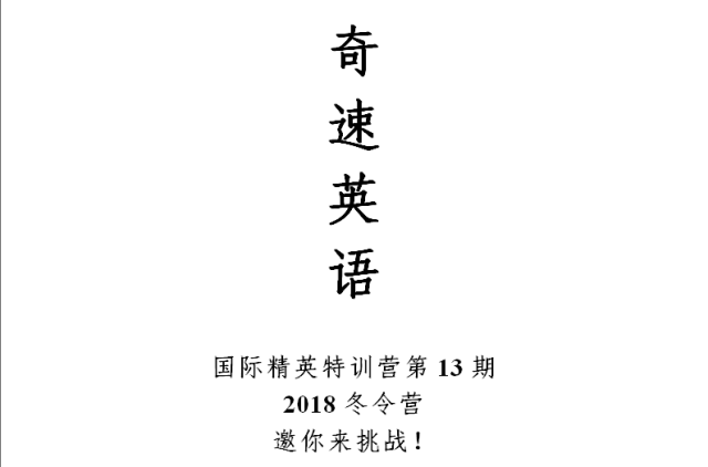 奇速英语国际精英特训营(第13期)邀你来挑战