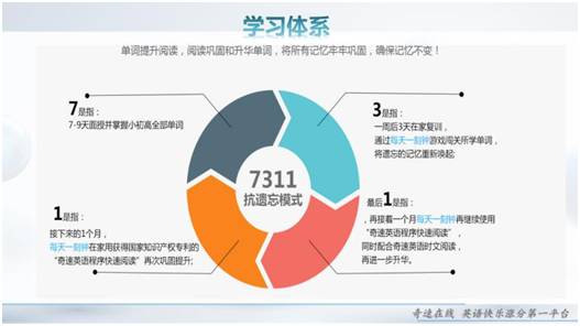 七、奇速英语独创的“7311”抗遗忘特训模式: