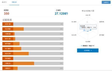涨分关键的阅读题,奇速英语配备了海量阅读练习资源,为学生们按照“话题、年级、问题、难度、题型”五大方面进行分类,教师、学生可手动按照学生具体情况做相应练习题,奇速英语后台也可根据学生在平台上的练习情况进行个性化推送。