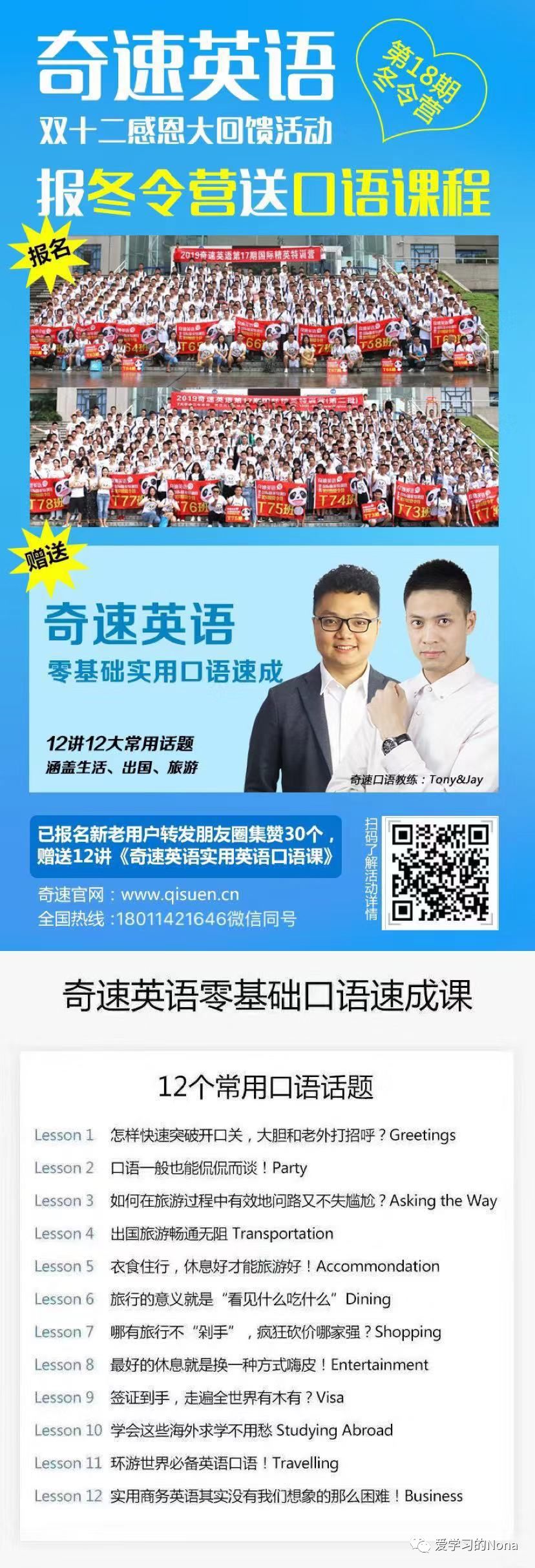 很多孩子小时候英语可能还不错,可进入到初高中学英语比较困难,为了解决这个问题,奇速英语推出涨分英语冬令营!让2亿中小学生学英语更快乐更快速!