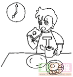 Hello, I’m Zhang Peng. I usually get up at 6:20.Now it’s 7:00. It’s time for breakfast. It is sunny outside. Then I go to school at 7:20.