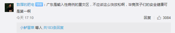 “广东是输入性病例的重灾区,不应该这么快放松啊,毕竟孩子们的安全健康可是第一啊”