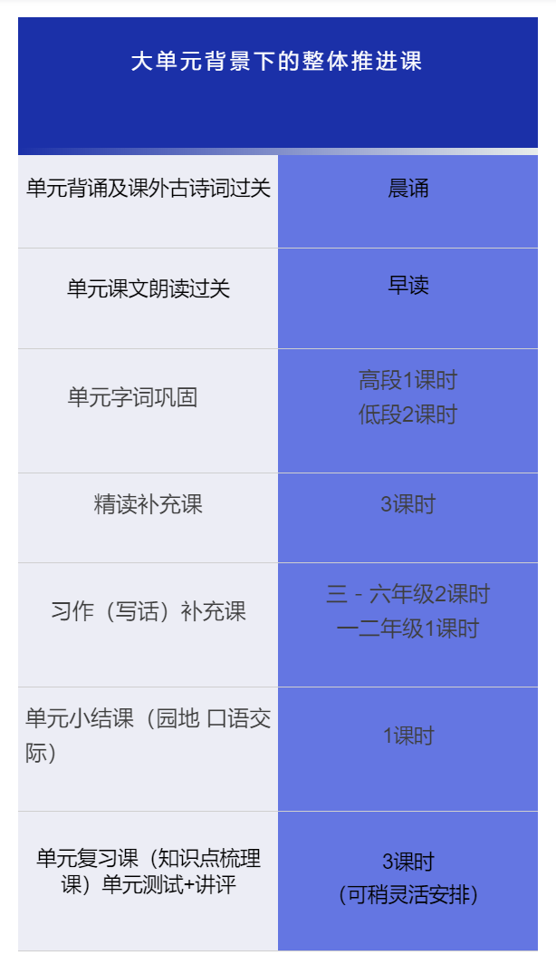 一改课型。面对夹生饭,若真要“零起点”教学,非把老师学生逼疯不可。真正意义上的从零开始,是在前期网课学习结果上的乘一零,而非乘以零。既要兼顾前期网课学习的结果,又要在这个结果上进行再加工和精加工,这样的课,可称之为“反刍课”。改变课型 ,变常态的教学课型为大单元背景下的整体推进课。一个周10节课,刚好可以完成一个单元的教学。