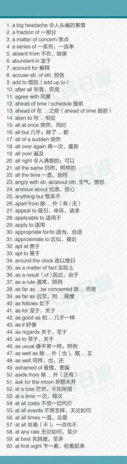 今天,给大家分享人民日报推荐的526个高中英语短语,各位同学快快收藏起来慢慢背哦!