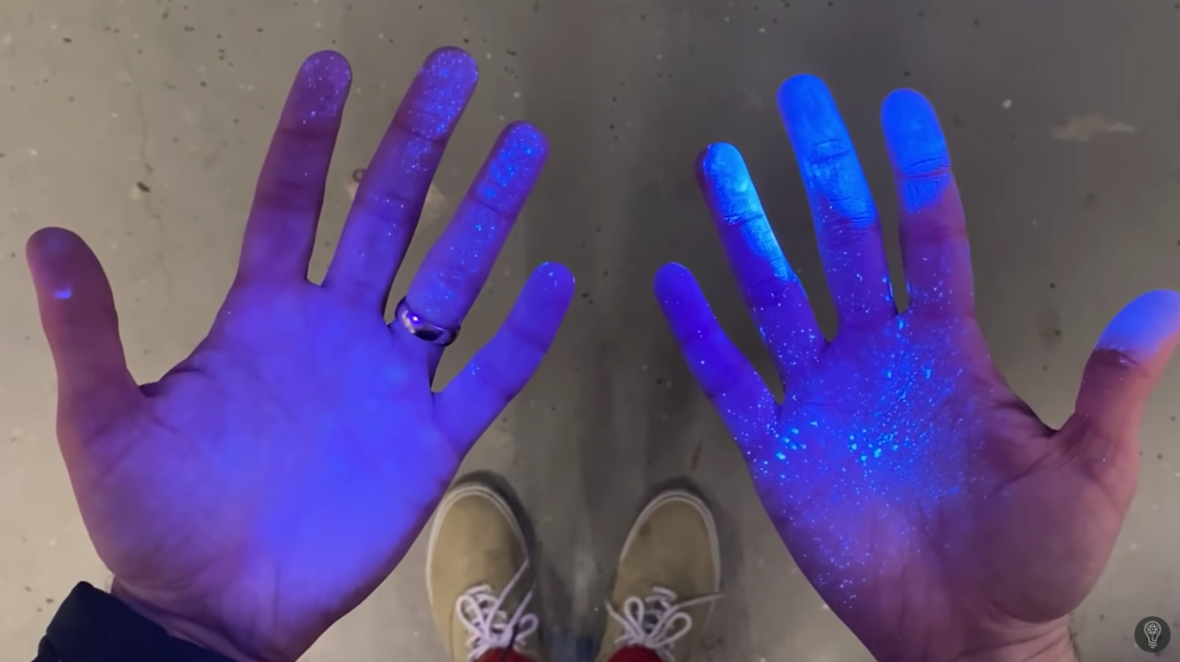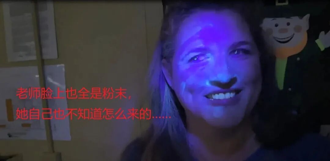 这种肉眼看不见的粉末会在紫外线的照射下发出荧光,分外醒目。