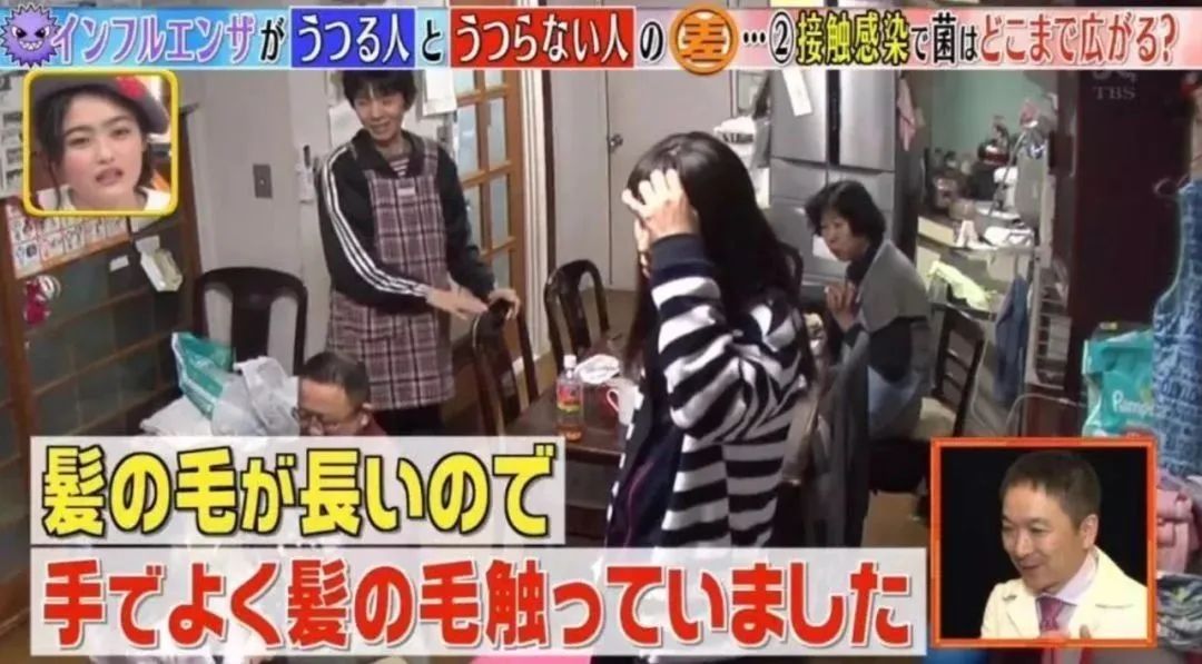日本TBS电视台的一档科普节目做了一项测试:如果1人携带病毒回家,通过接触可以传播给多少人。