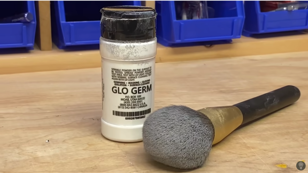 实验材料很简单,只有一个,一种叫“Glo Germ”的粉末,用它来模拟病毒。