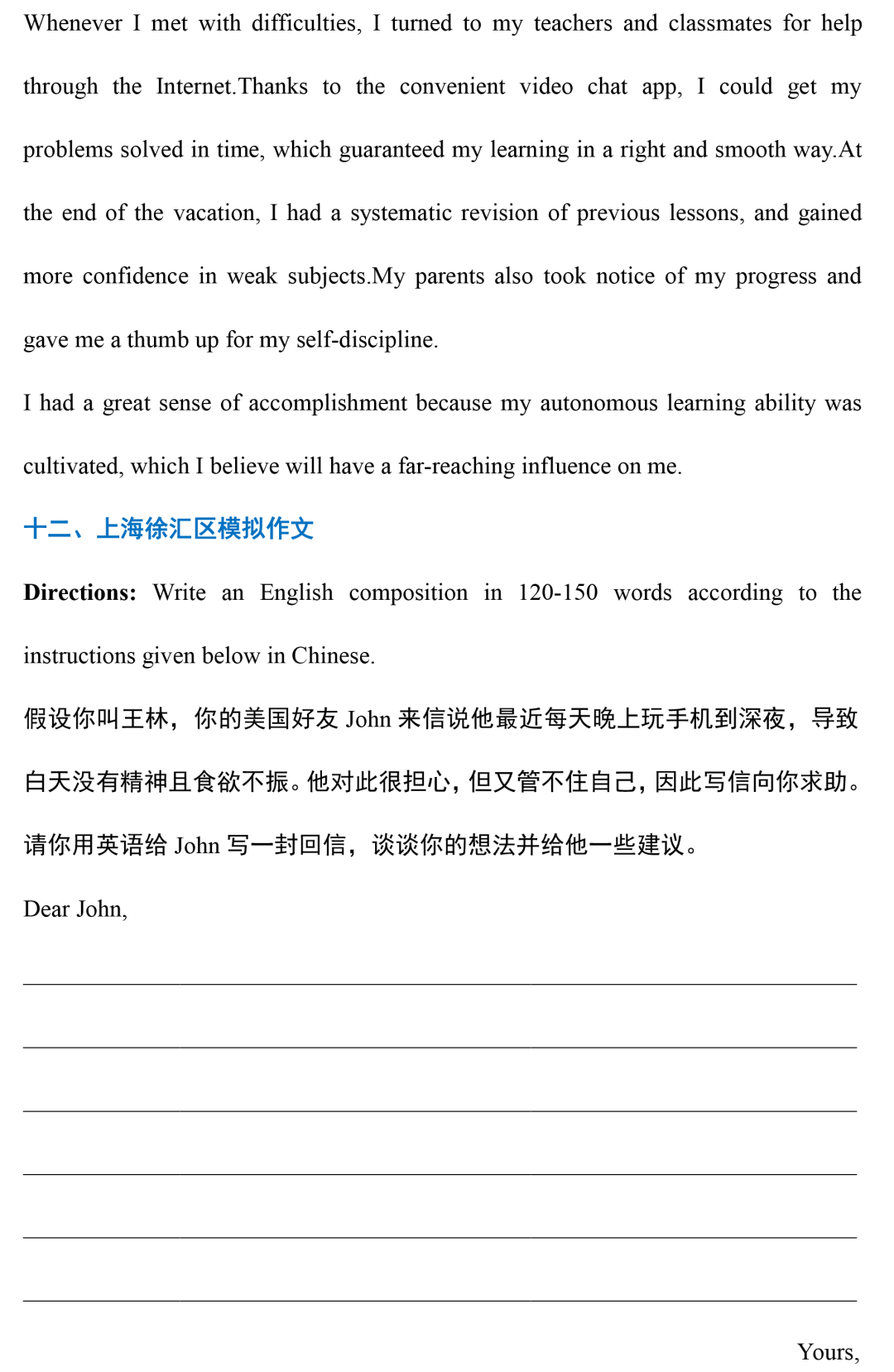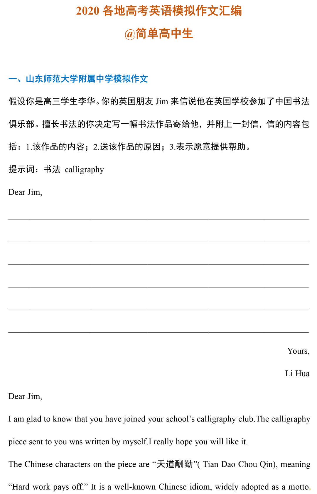 今天,小编为同学们整理了2020年全国部分地区的高考英语模拟作文(附范文),涉及到全国卷、北京、天津、山东、浙江、上海、江苏卷。请各位认真学习!