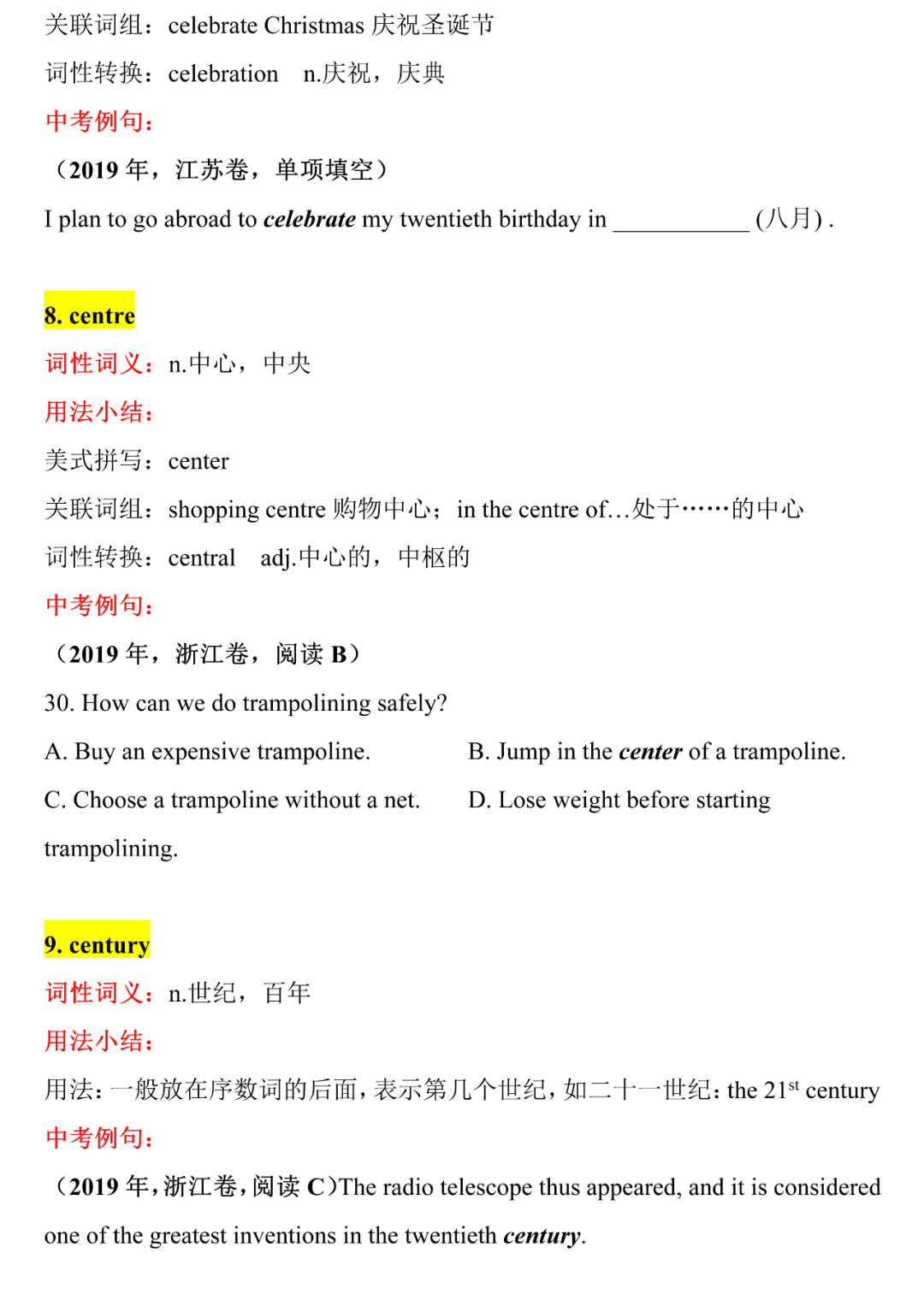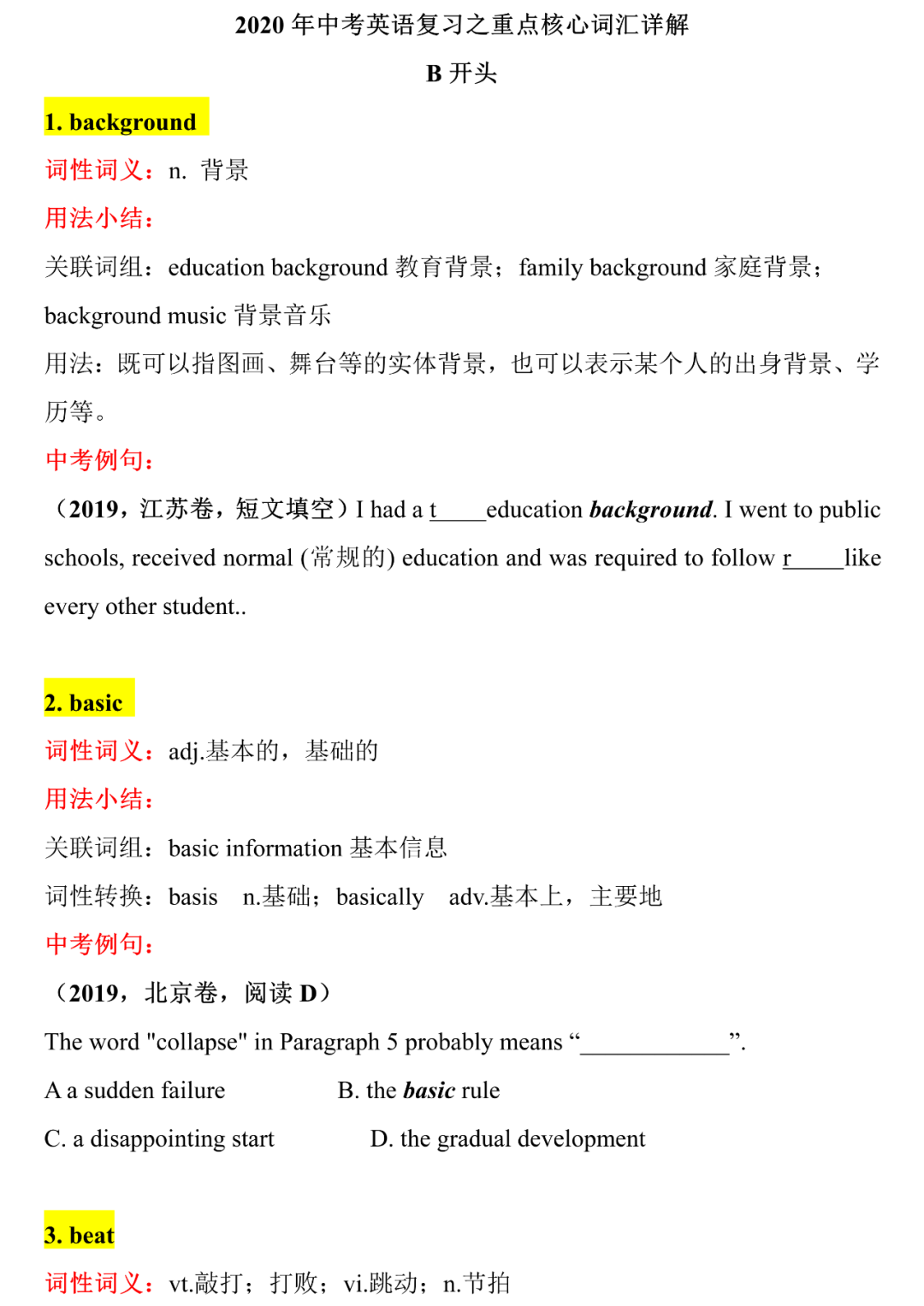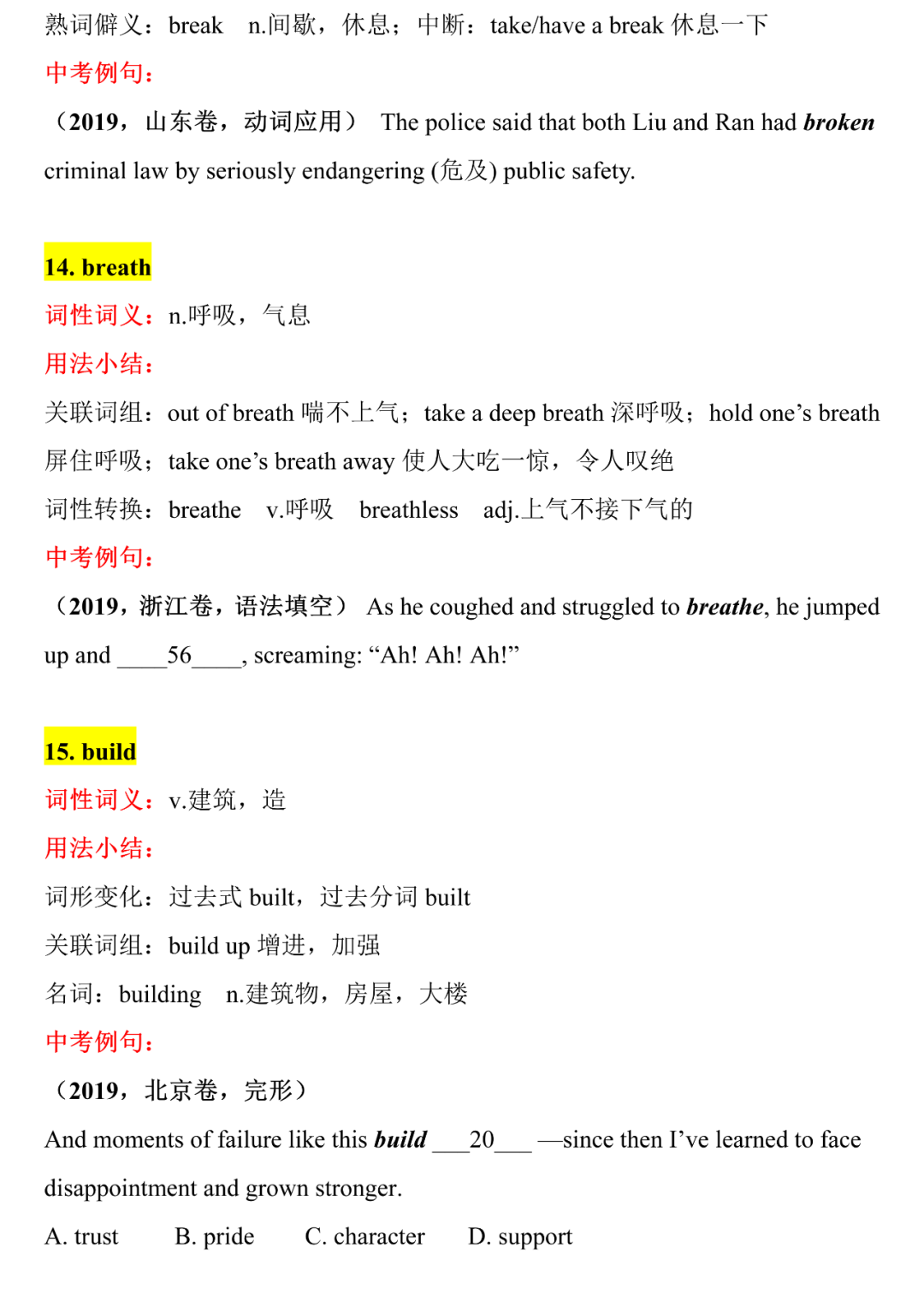 中考英语核心词汇详解,中考前再过一遍,2021考生提前背!B-C