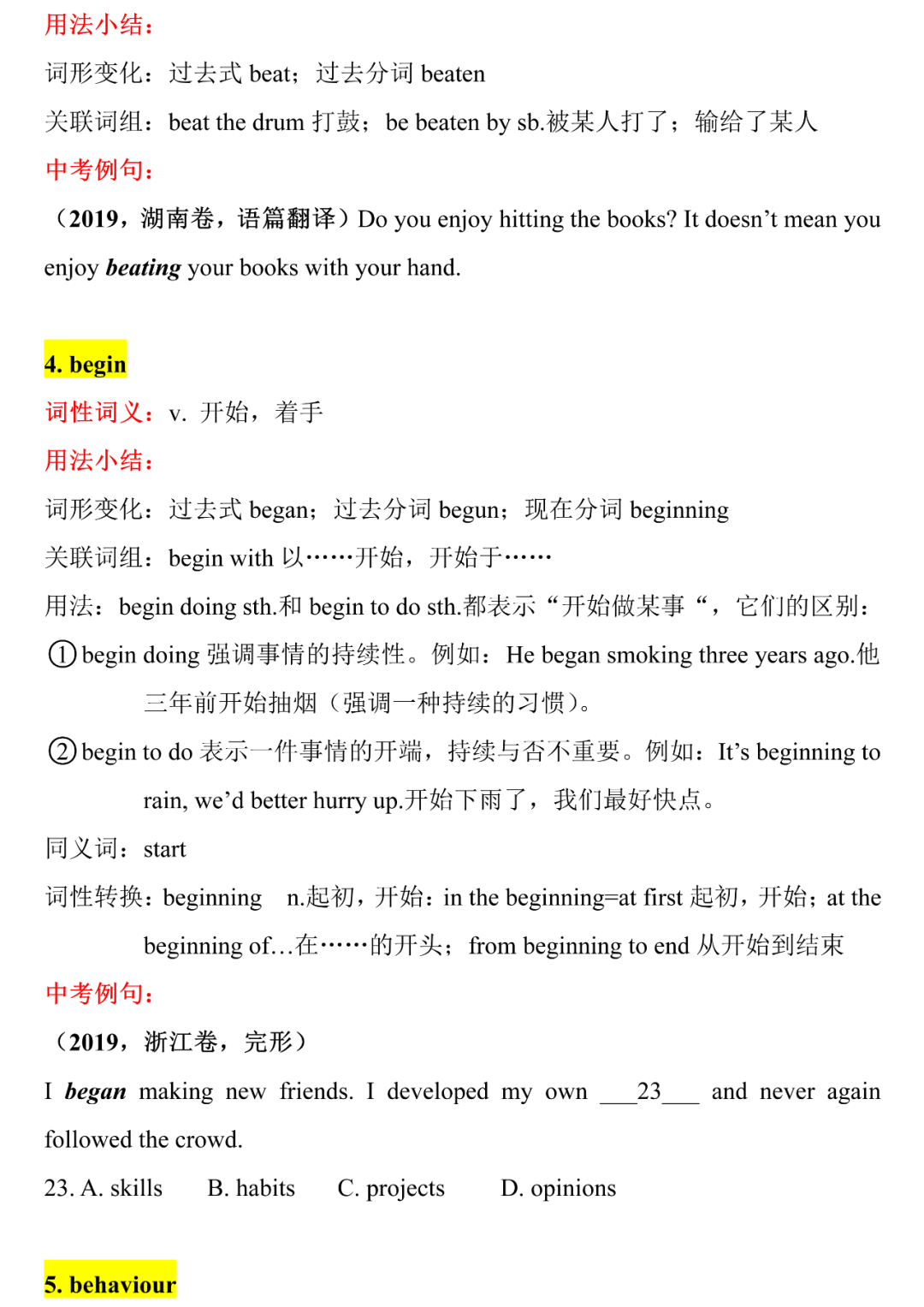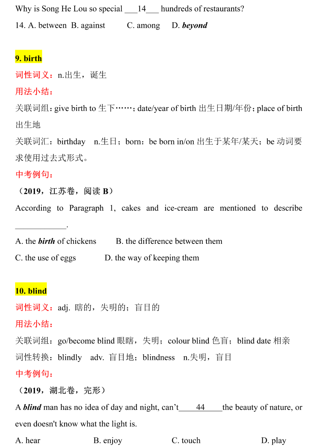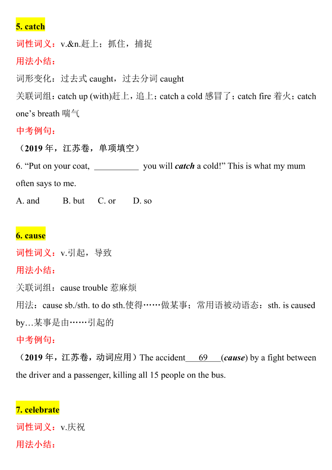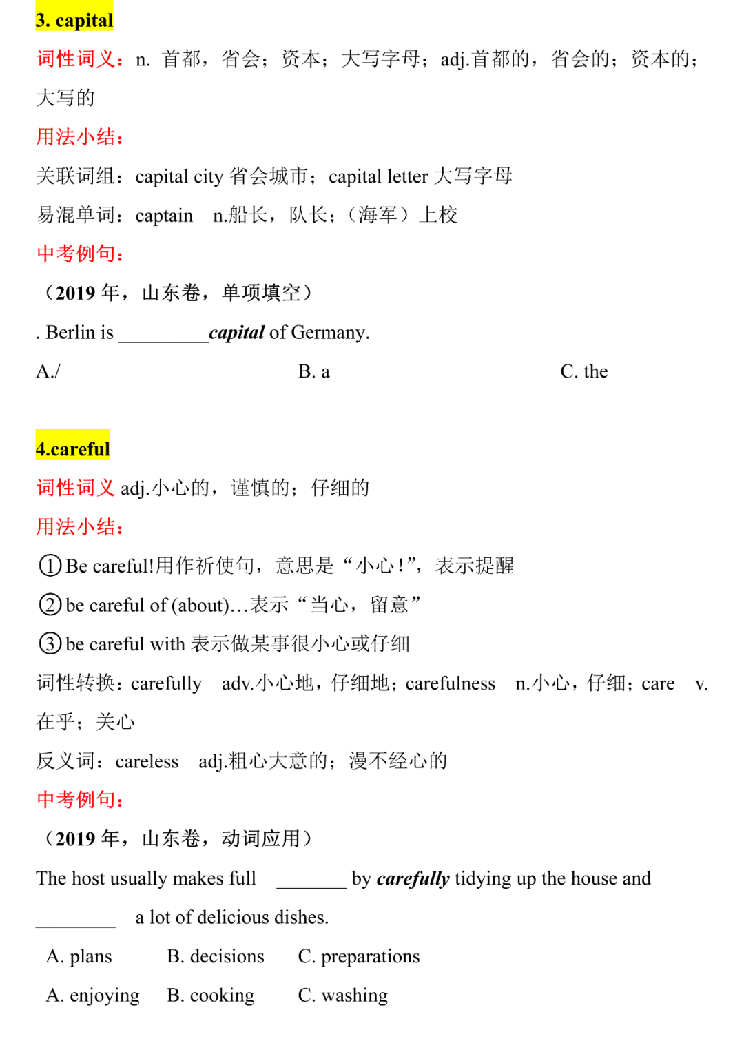 中考英语核心词汇详解,中考前再过一遍,2021考生提前背!B-C