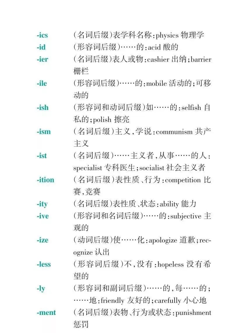高中阶段,单词形式拓展记忆的唯一方式就是构词法,构词法包括:合成、派生和转化,其中最好的方法是派生法,即使用前后缀来学习和记忆单词。今天,老师跟大家分享高中英语常见的所有词根、词缀汇总,希望对你的英语学习有帮助!