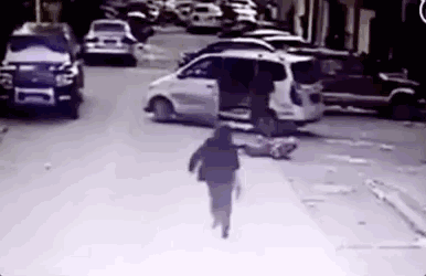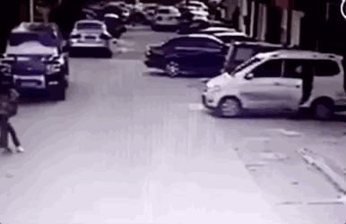 哭喊声让路过的大妈及时发现不对,她在车子发动的瞬间飞奔过去,把孩子抢了回来。