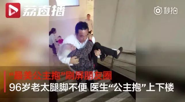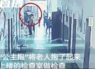 此时,一名医生刚好路过,询问了几句后,便将老人抱上了楼。检查完毕又将老人抱下楼。为这个暖暖的公主抱点赞!