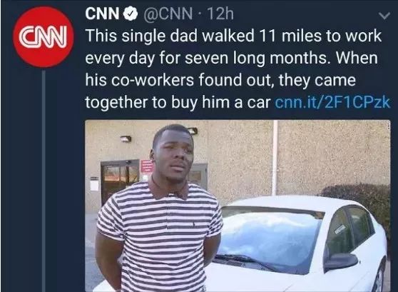 他的同事们知道后,一起出钱给他买了一辆小汽车,这样他就能有更多的时间和孩子们待在一起了。