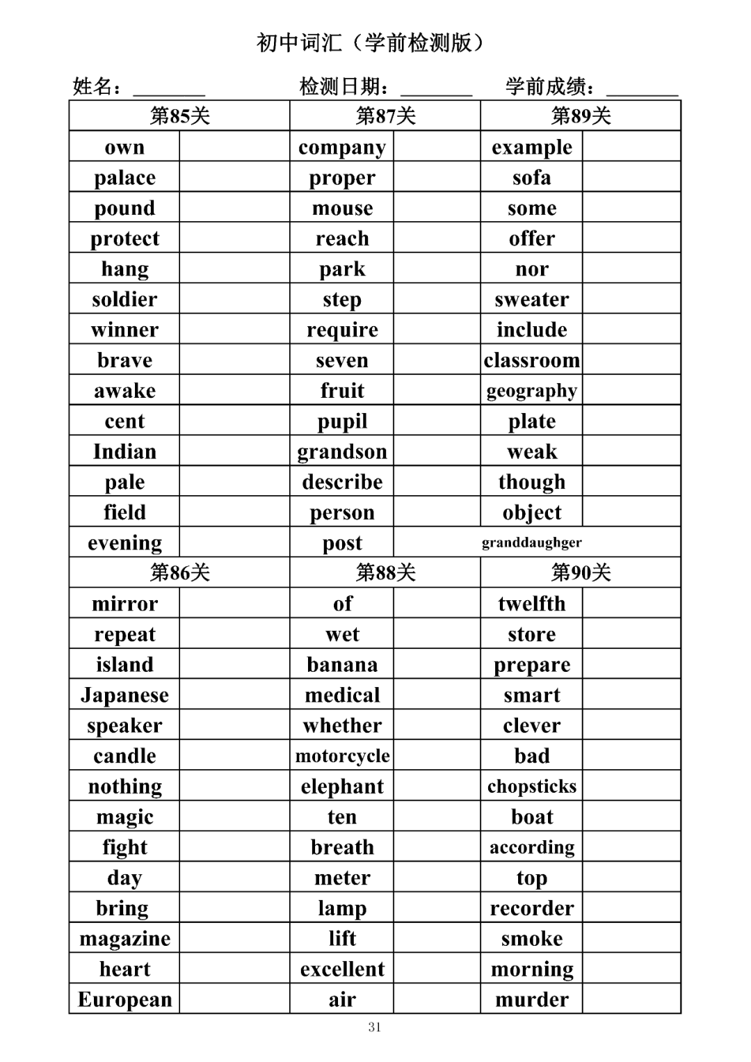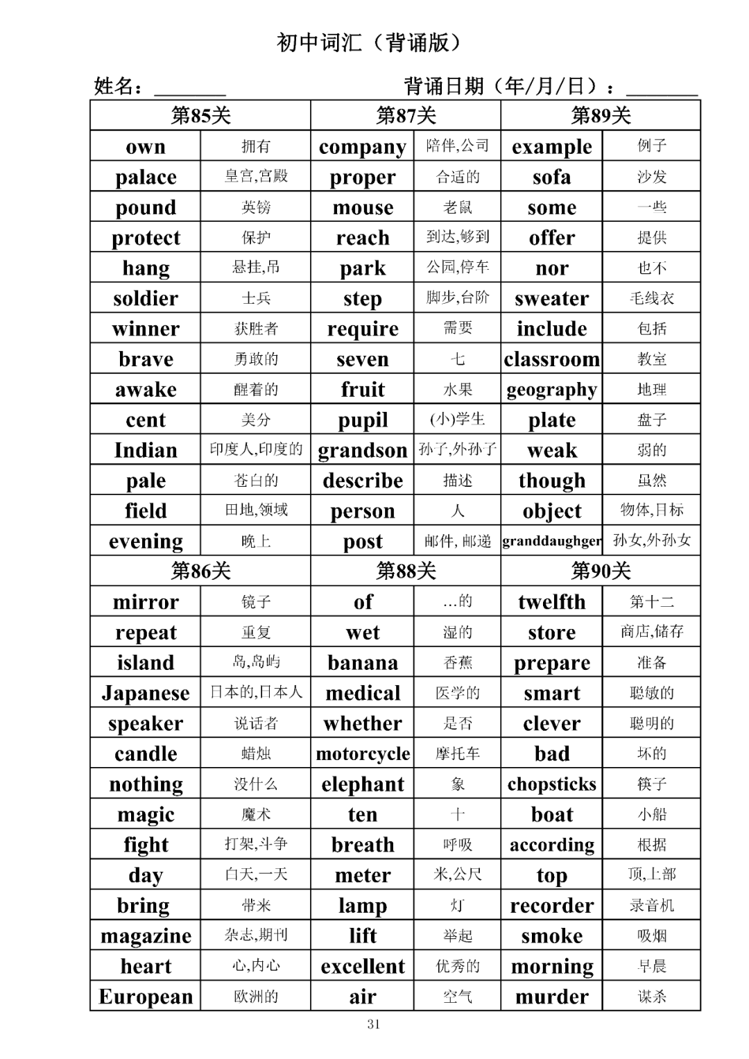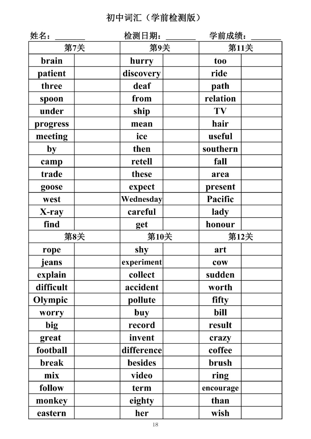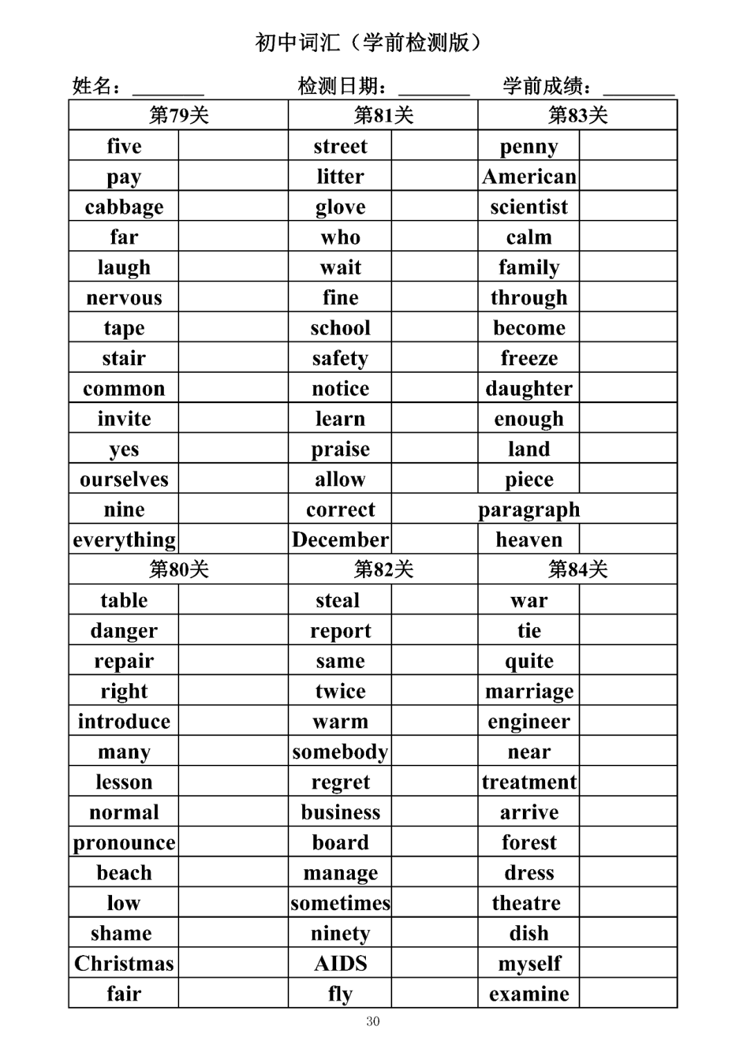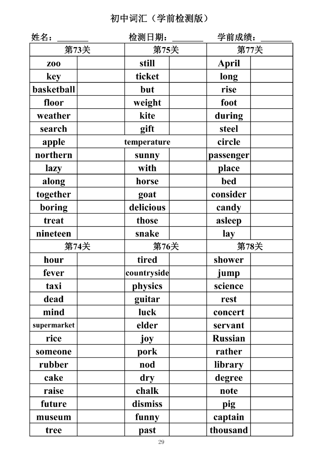 初中英语词汇(背诵版+检测默写版),打印出来直接用!
