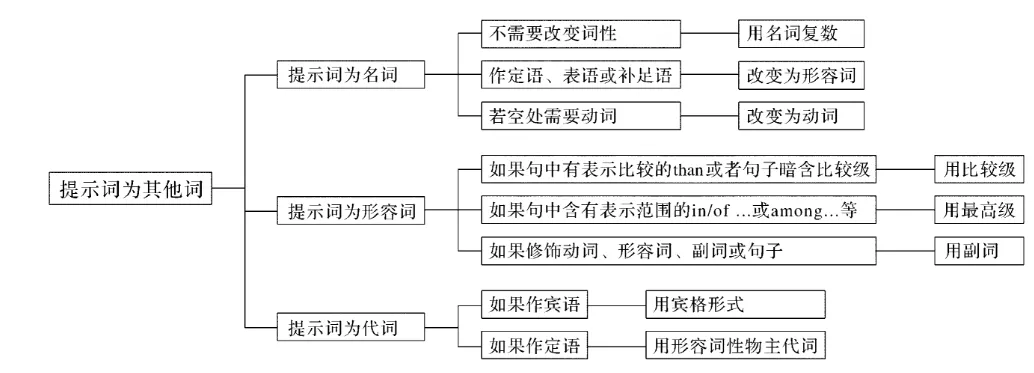 1~3题:考查方式有动词派生为名词、名词派生为形容词或动词、形容词派生为副词等。每种最多设1题。