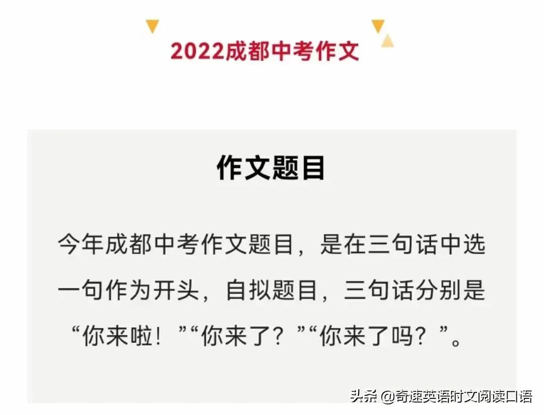 今年成都中考作文题目,是在三句话中选一句作为开头,自拟题目,三句话分别是“你来啦!”“你来了?”“你来了吗?”。