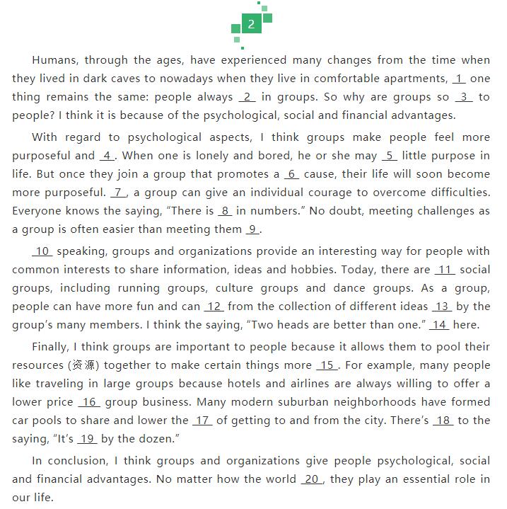 另外,复读全文不要局限于仅仅是做完题目后检查选项。在复读的过程中,要回顾反思,这样才能进步。对同一个文本看得越多就越能发现其上下文之间千丝万缕的联系,然后琢磨这些联系,这对我们能力的提高有很大的帮助。俗话说,读书百遍,其义自现。我们通过反复精读做过的完形来提高自己的水平,进而在面临从未见过的题目时也能进行灵活的知识迁移。