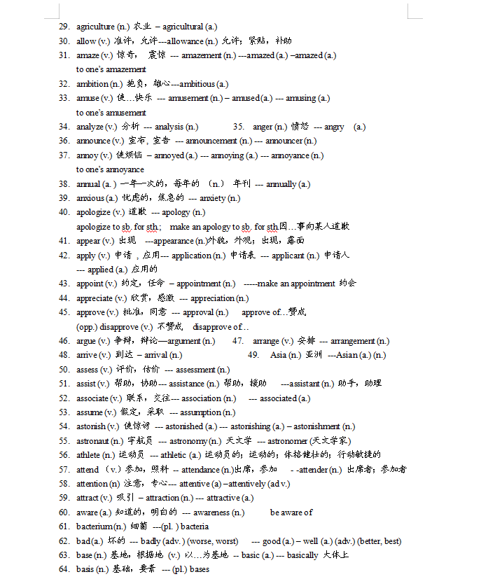 高中英语单词:词性词形转换练习+答案!附高考英语写作万能模板