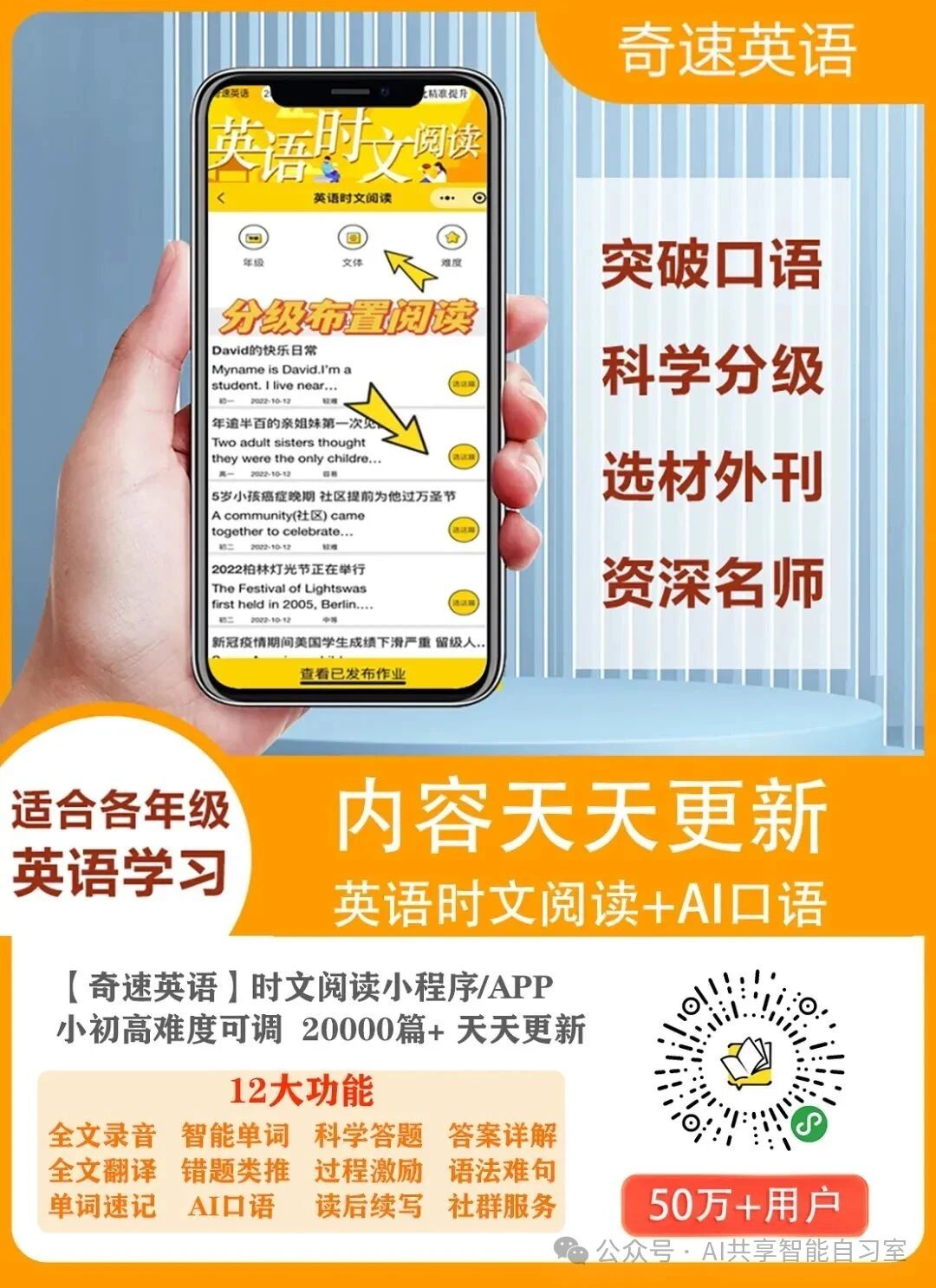 奇速英语时文阅读学习机,让英语学习更高效 在当今快速发展的信息化时代,如何高效地学习英语成为了许多人关注的焦点。奇速英语