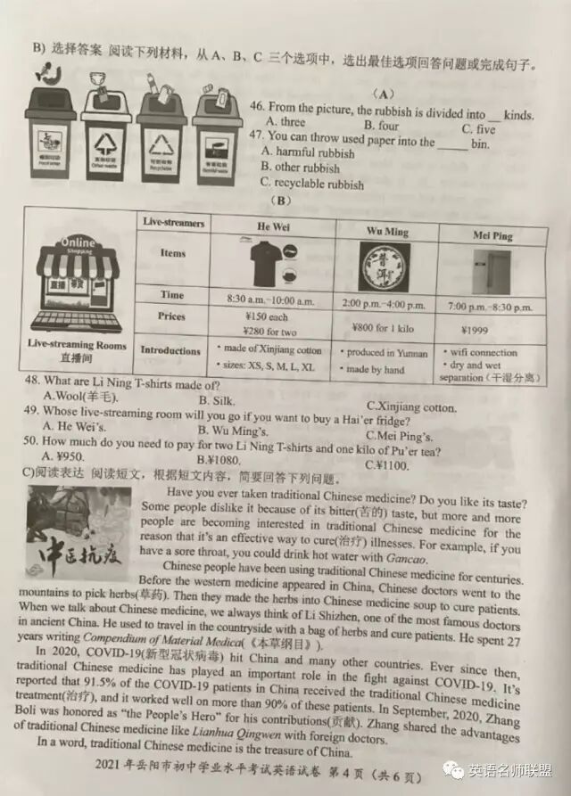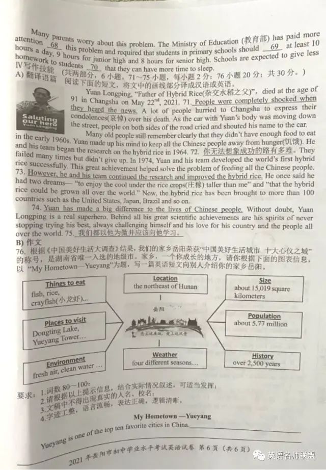 2021年湖南岳阳中考英语试题