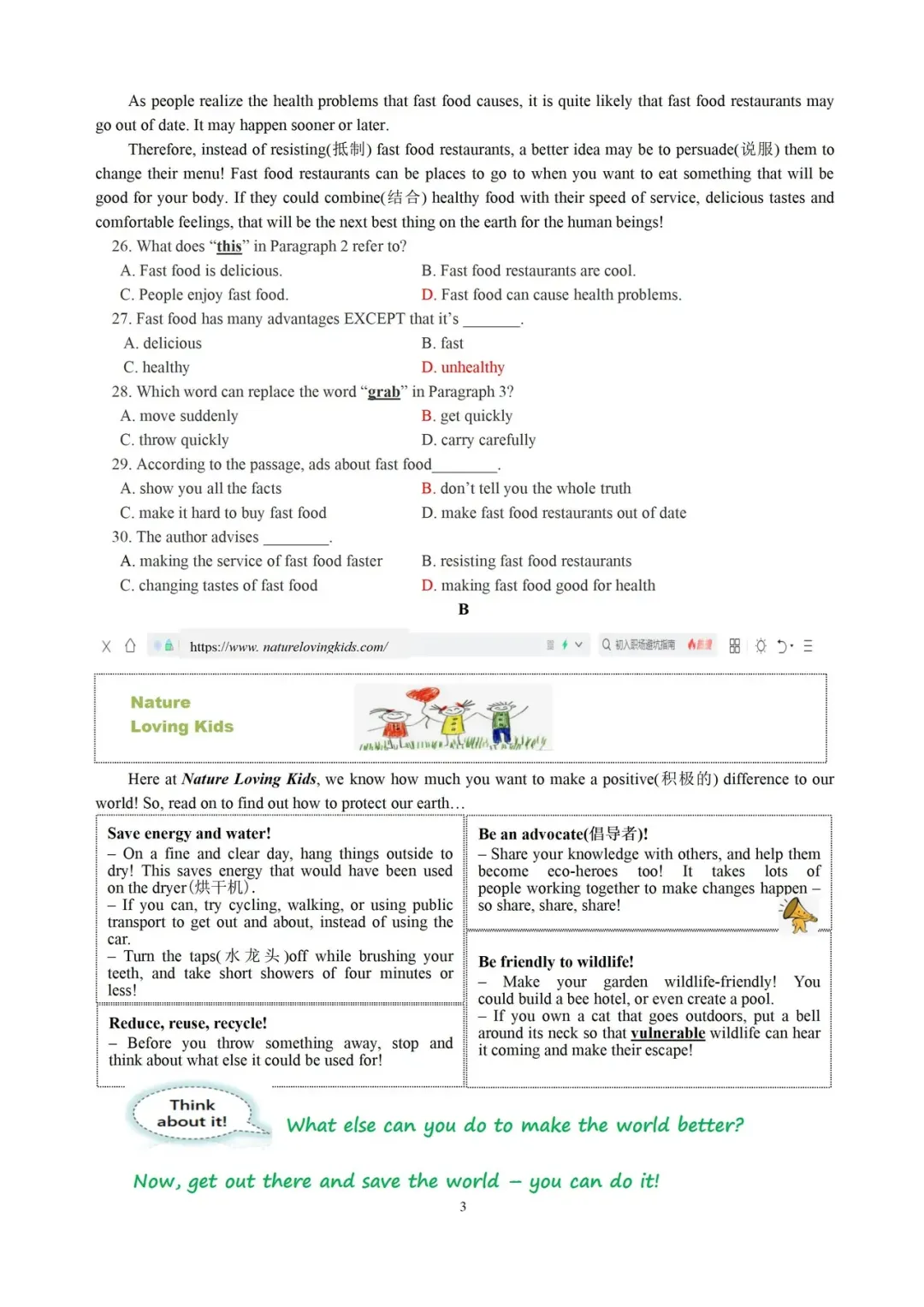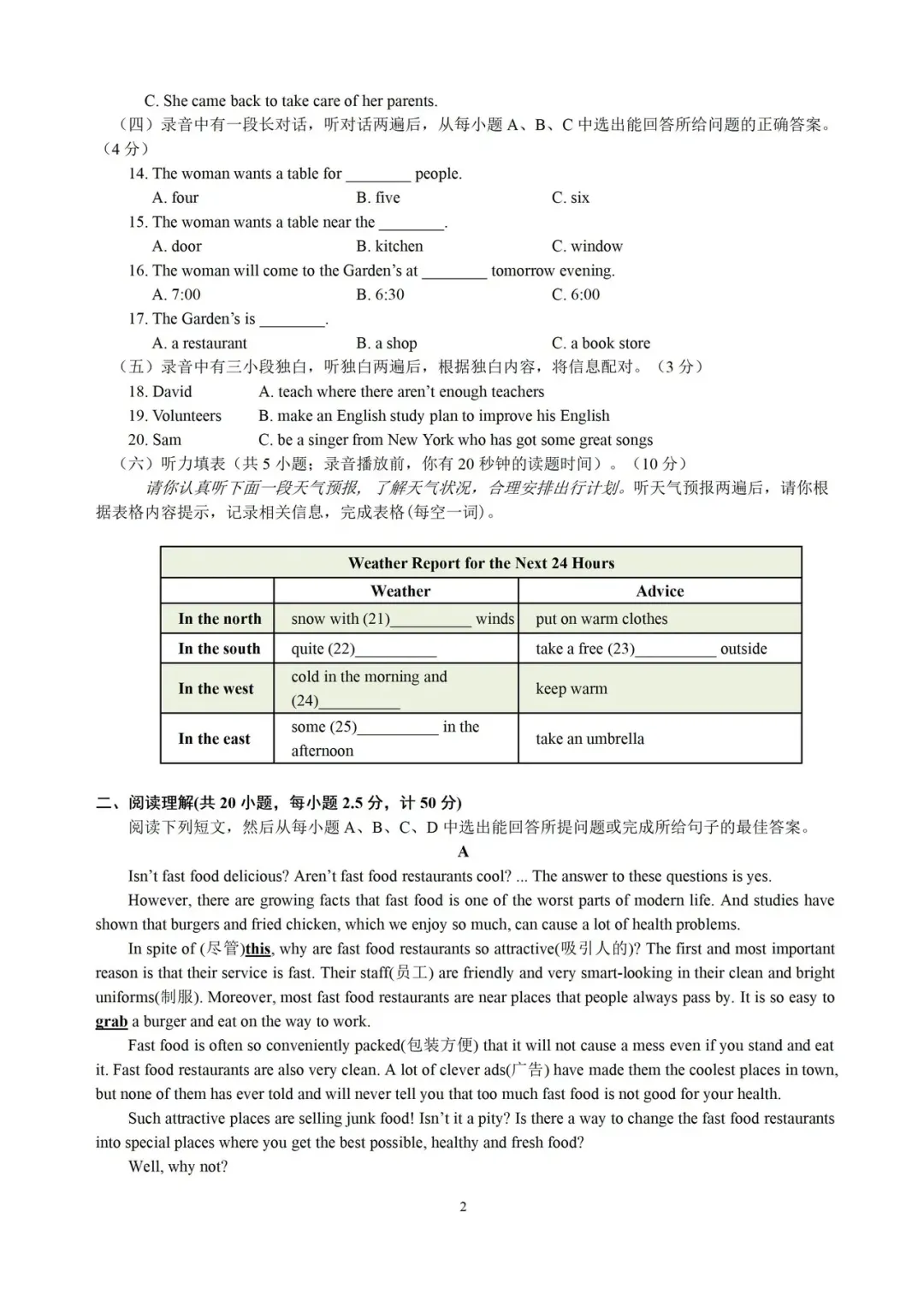 1-5ABACA 6-8CAB 9-I3 CBCBB14-17 CCAA18-20 CAB 21.strong22. warm 23. walk 24.evening25.rain 26-30 DDBBD 31-35 ABDDC 36-40ACACB 41-45 ABBCA