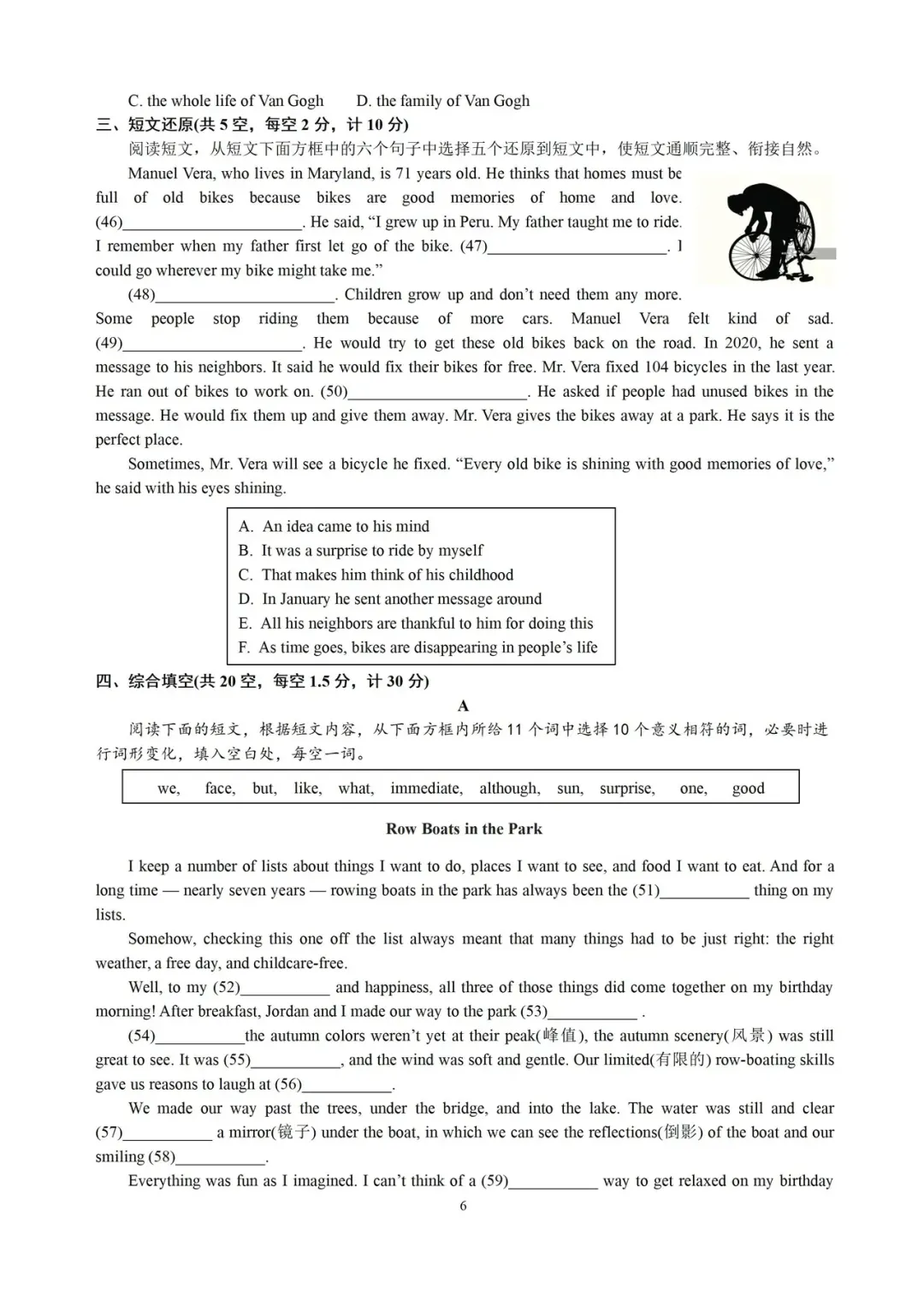 (一)答案46-50 CBFAD(二)评分说明