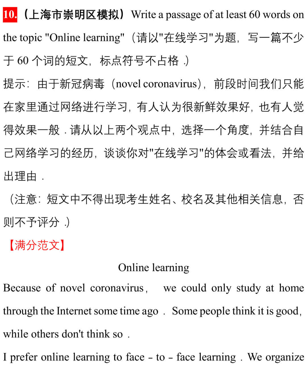 2. 紧扣作文题目、语言表达准确、语意通顺连贯;