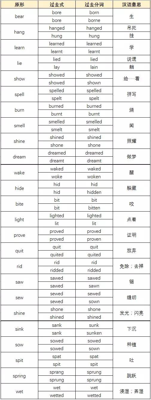 今天老师整理了高中英语不规则动词汇总,高考是一定会用到,还没有掌握的同学们赶紧学起来吧!老师已为大家备好电子打印版,文末附电子打印版领取方式,想要获取电子打印版请拉到文末