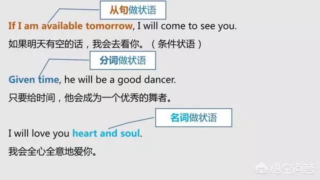 英语中,状语传递的信息包括:时间、地点、原因、目的、结果、方式、程度等,其使用的目的就是使表达更为丰满、具体。