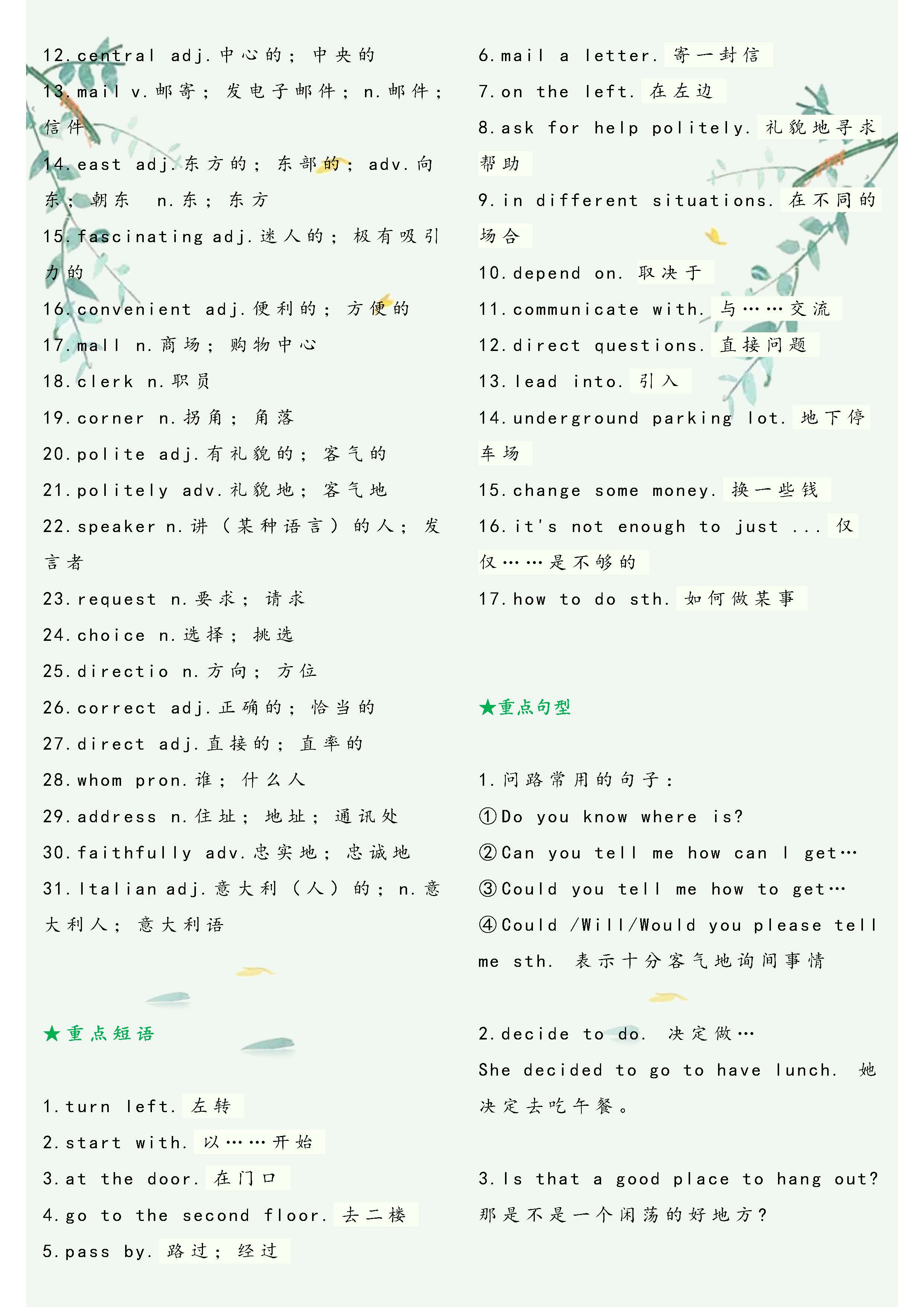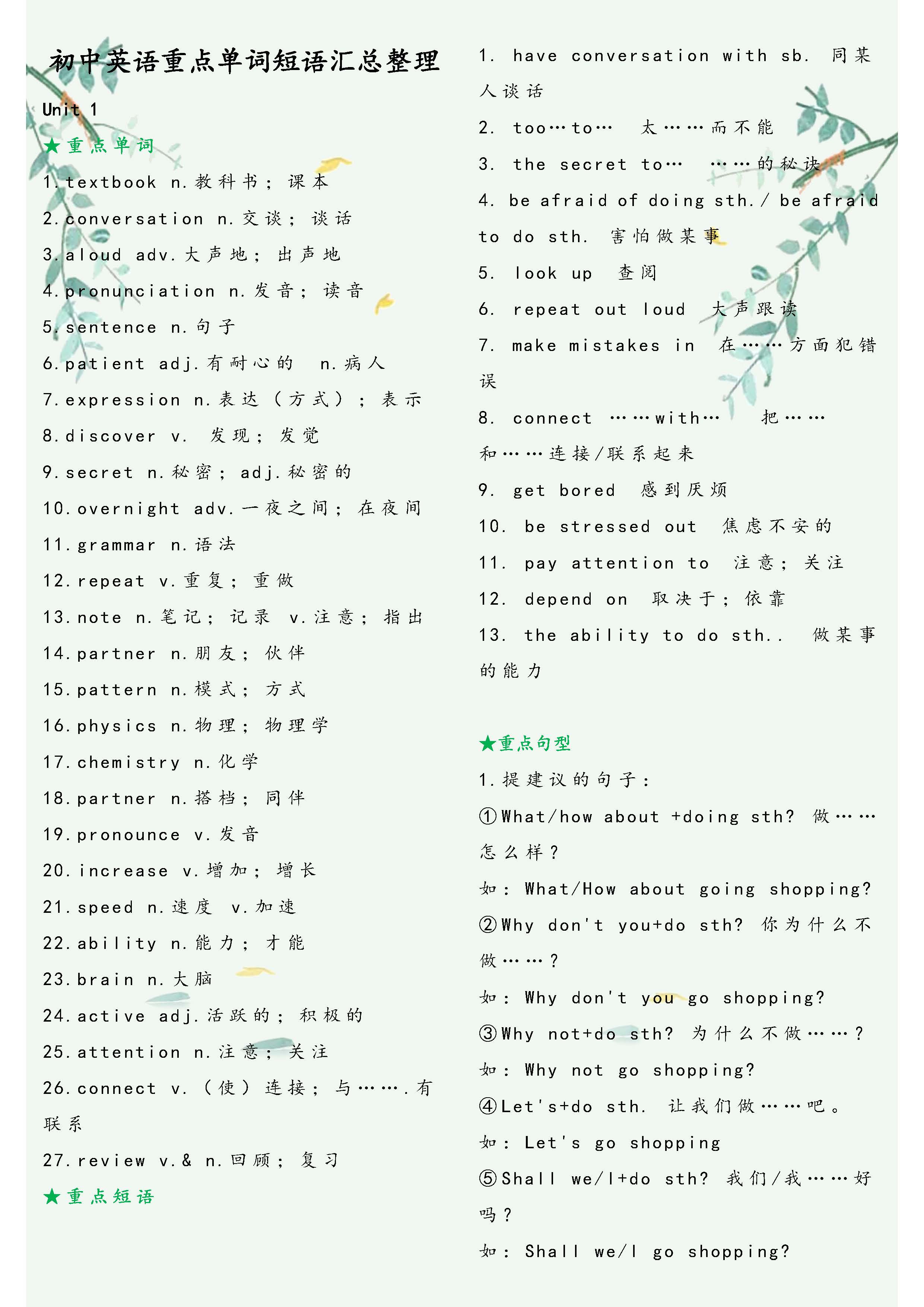 初中英语:重点单词+短语+句型汇总整理!考试经常考,一定要背熟