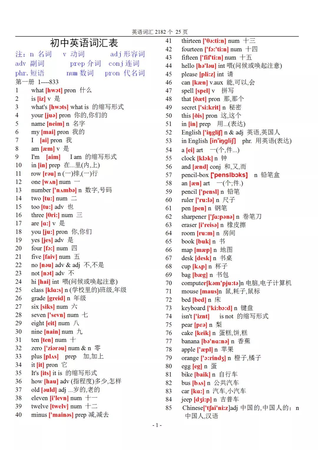 初中英语2182个基本词汇+音标,承包三年的词汇量(可打印)